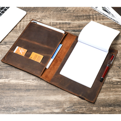 AIGUONIU Funda Folio de Cuero de Vaca Vintage Hecha a Mano, Cuaderno B5, iPad Pro 10,5, Organizador de Diario de Negocios, 27x20cm