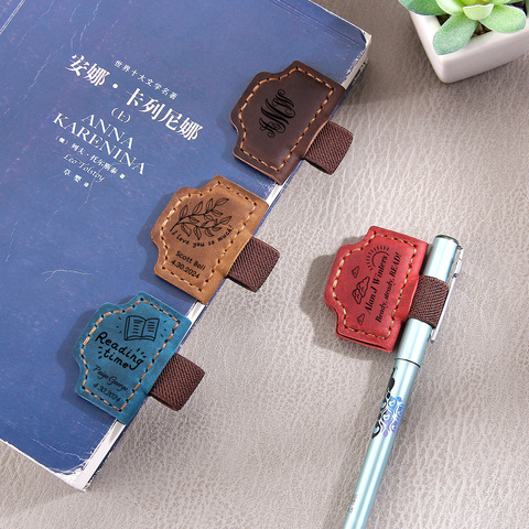 AIGUONIU Couro Caneta Loop para Notebook Aço Inoxidável Pen Holder Handmade Latão Caneta Titular Jornal Marcador com Cobre Clipe
